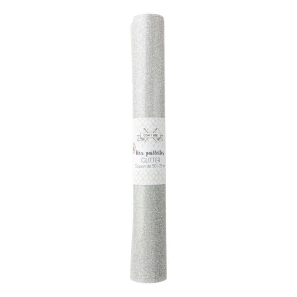 COM – Feuille de flex Pailettes Glitter argent 50×25 cm