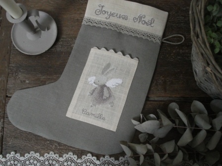 Le Lin d’Isabelle – Botte de Noël « Ange Lapin »
