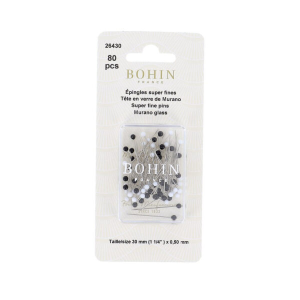 BOHIN – 80 Épingles tête verre noir/blanc Réf 7026430