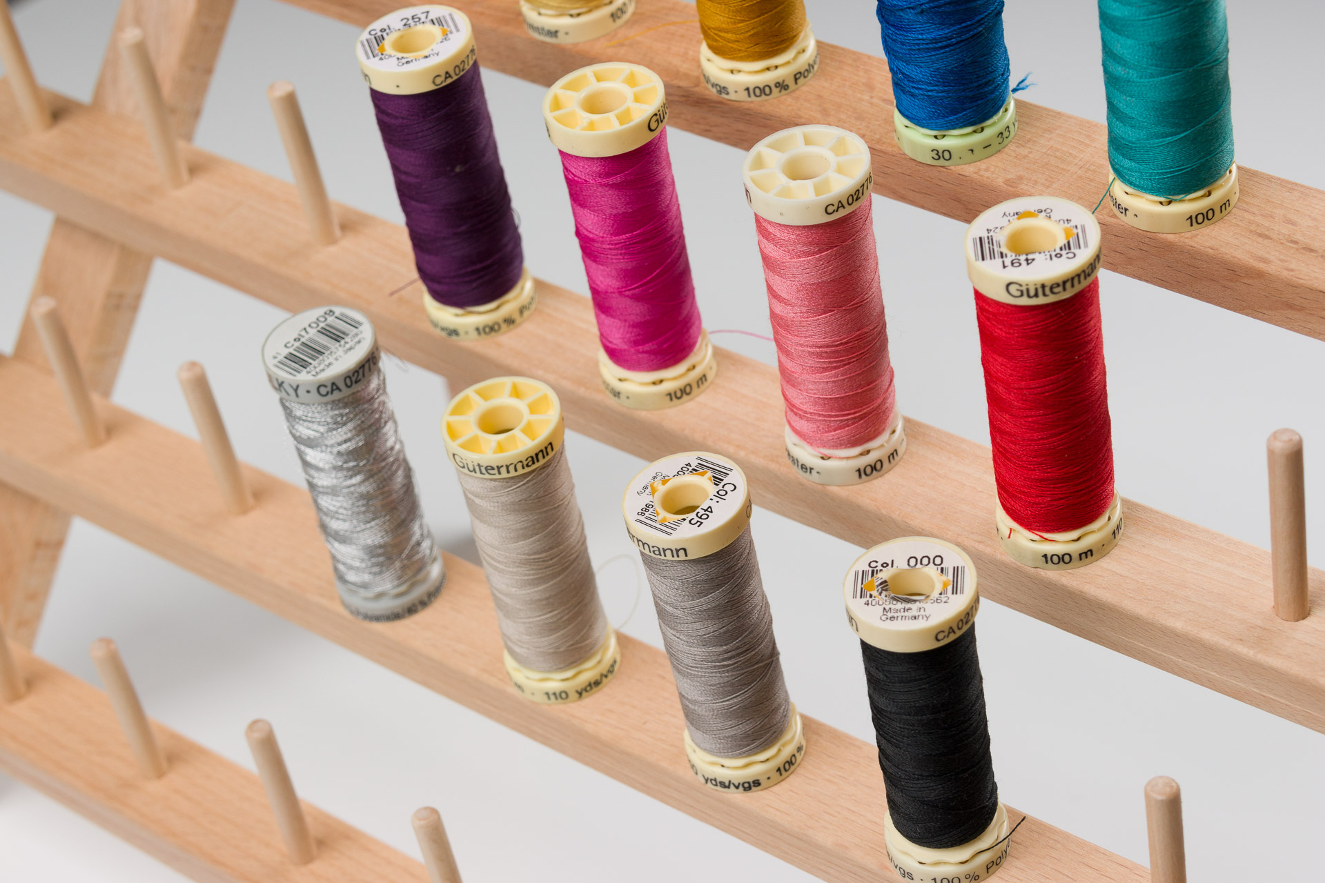 Pratique et esthétique, ce porte-bobines permet de ranger et d’organiser jusqu’à 30 bobines de fil.