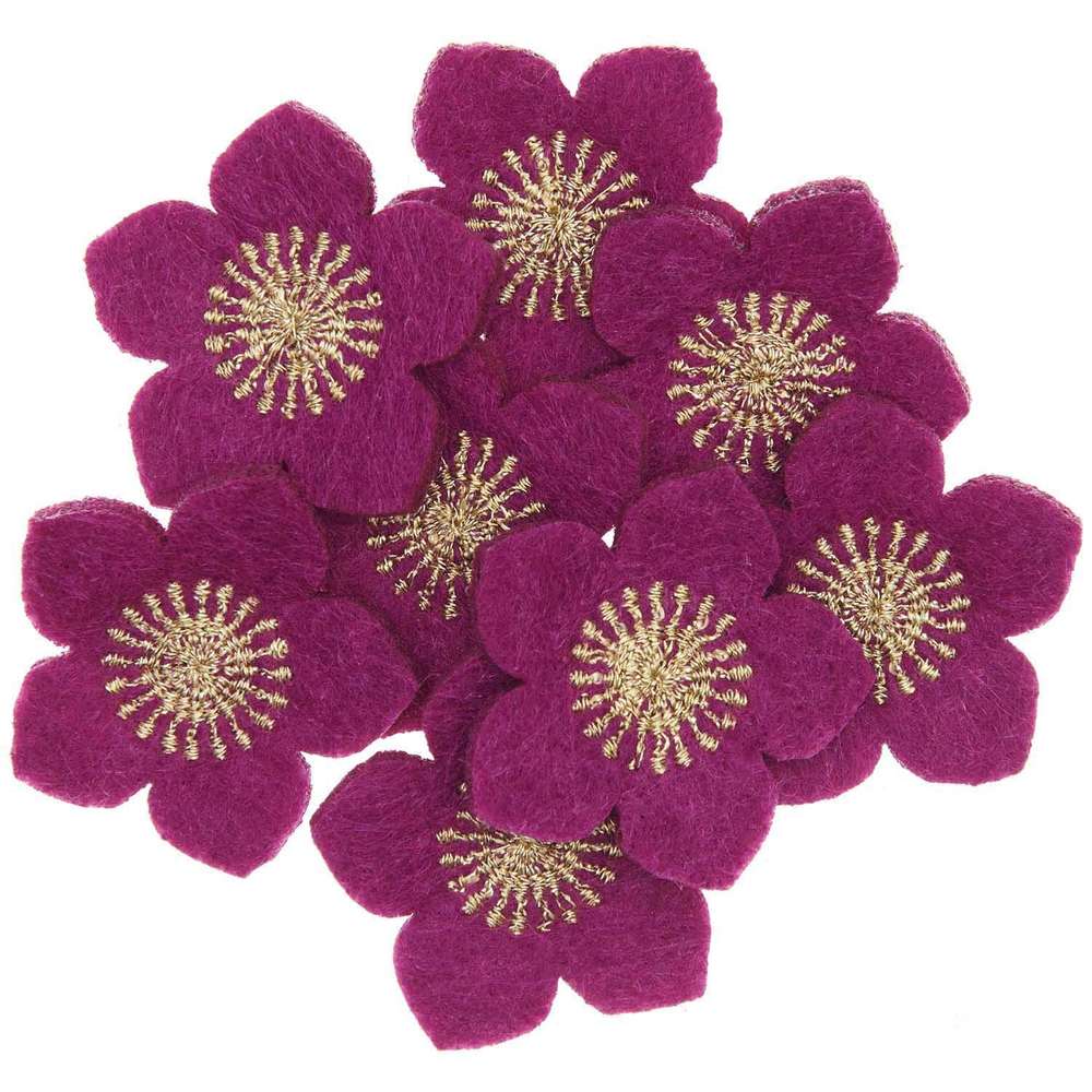 Rico Design – Confetti feutrine, roses de Noël, violet-or brodé, 8 pcs Réf 500483 (182)